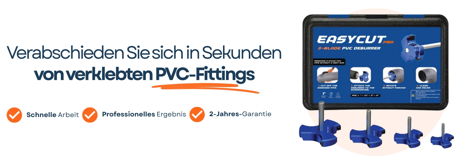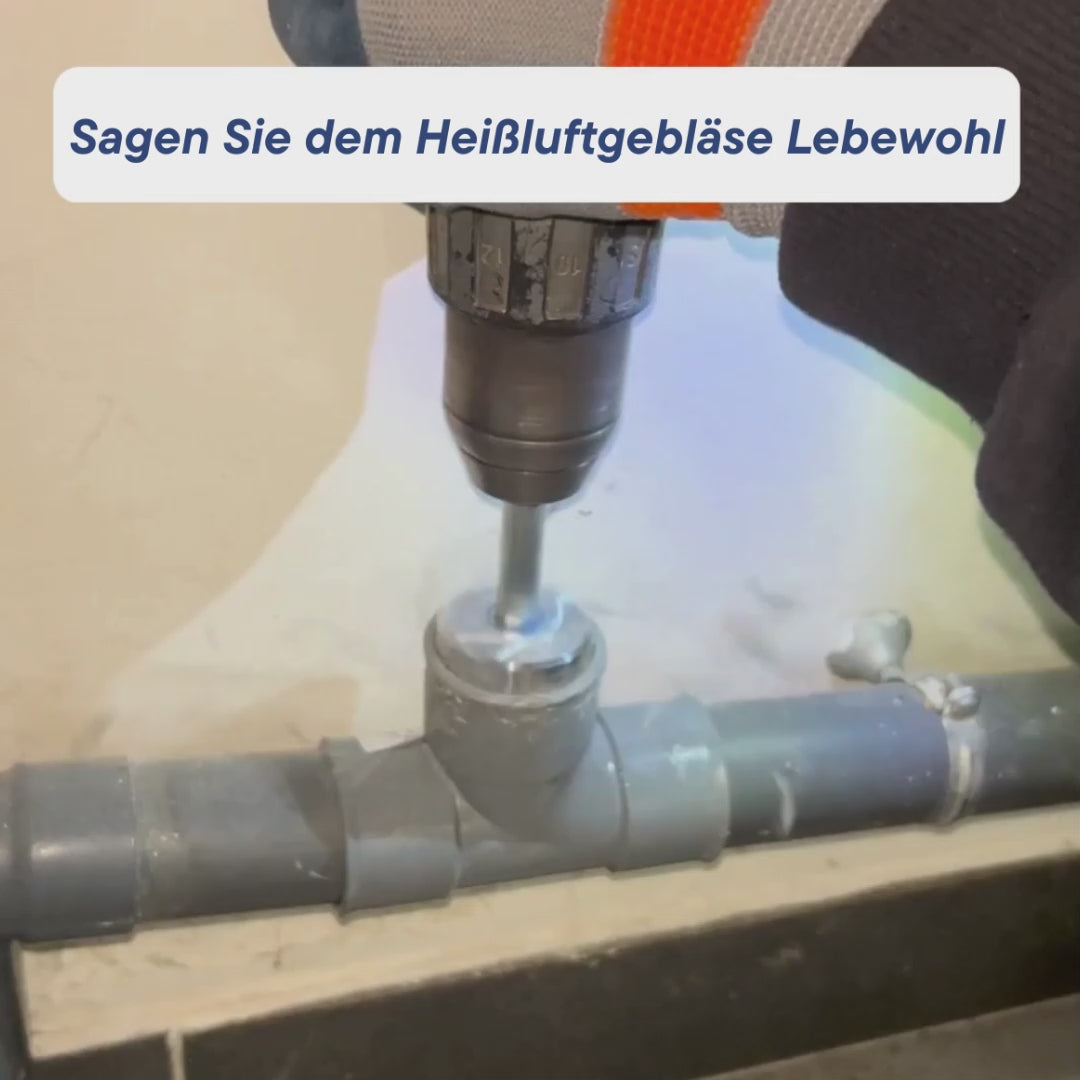 Es ermöglicht Ihnen, eine bereits verklebte PVC-Muffe ganz einfach mit einer Bohrmaschine zu entfernen – ohne Heißluftgebläse und ohne unnötiges Brechen.